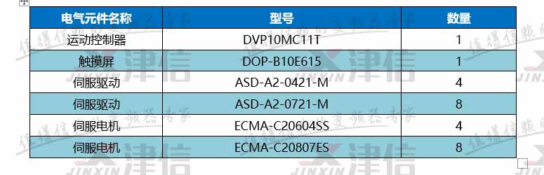 1.主要電氣控制部件清單: